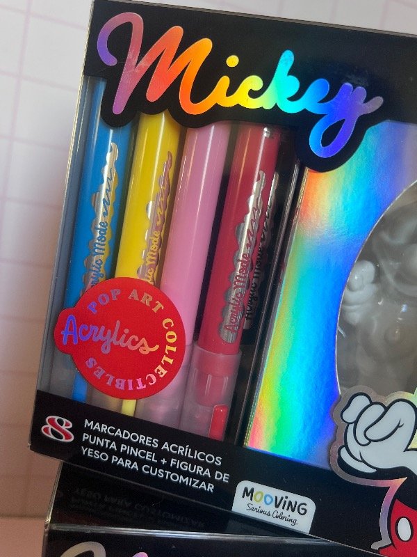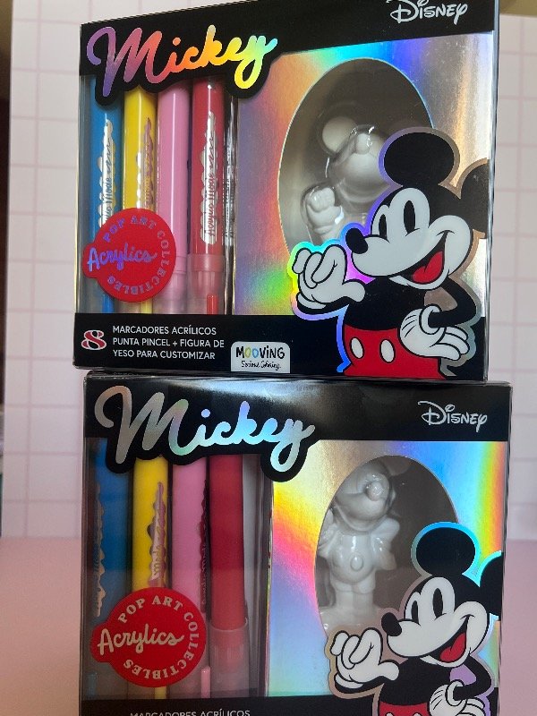 Incluye una figura de yeso de Mickey para customizar y 8 marcadores acrílicos punta pincel a tono con el personaje ❤️